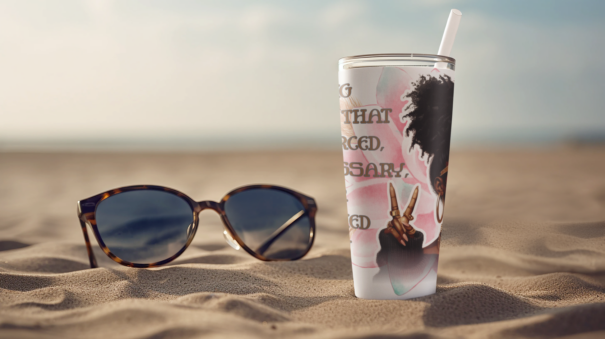 Step into your soft era with fierce energy and flawless style. This “Ignoring Things That Feel Forced” tumbler isn’t just a statement piece—it’s a whole mood. Featuring a stunning illustration of a confident Black woman draped in gold, giving peace sign realness, this tumbler is your daily reminder to protect your peace and only align with what fuels your growth. Wrapped with a powerful affirmation in bold retro typography, this insulated tumbler is perfect for sipping your iced coffee, tea, or glow-up smoothie while staying true to your vibe.