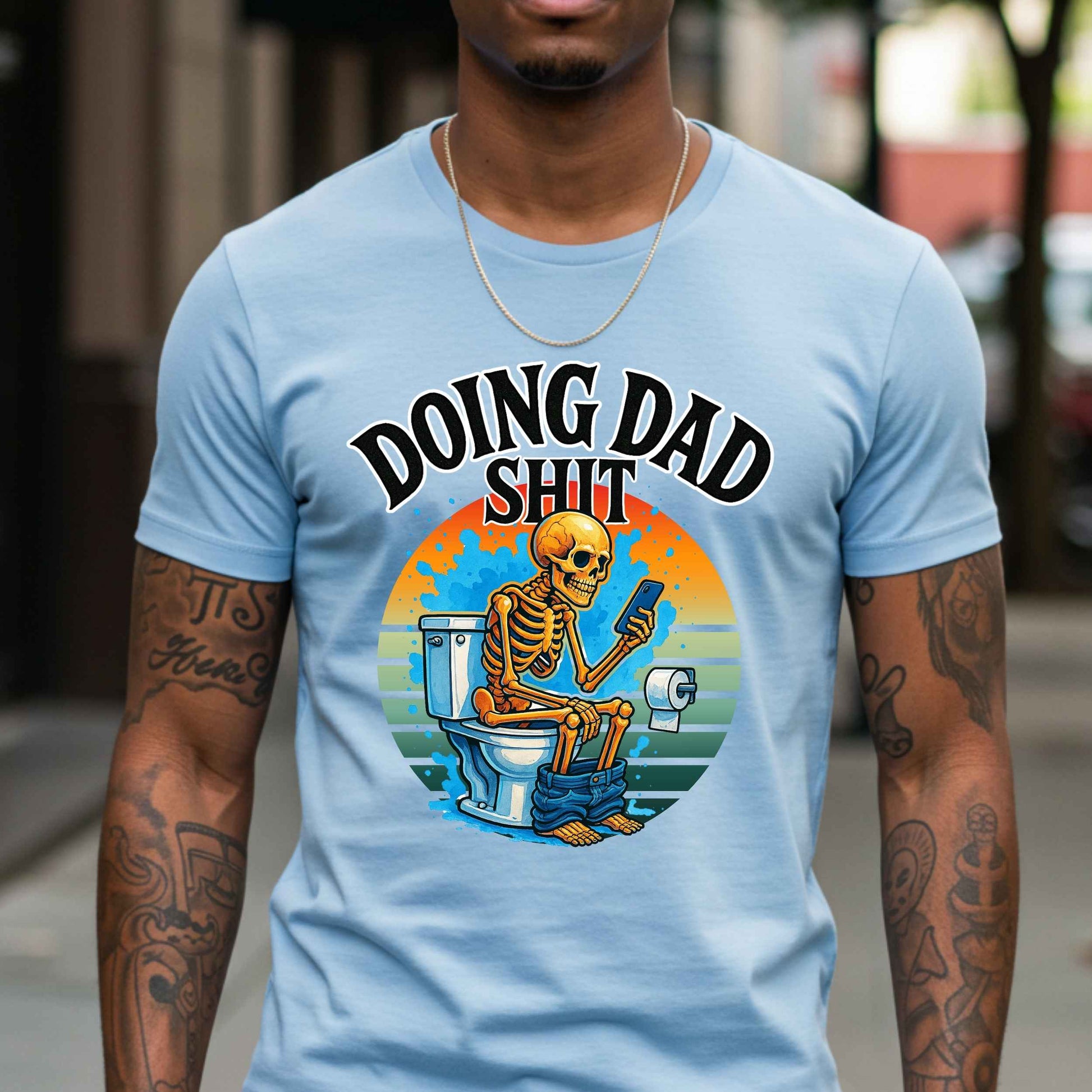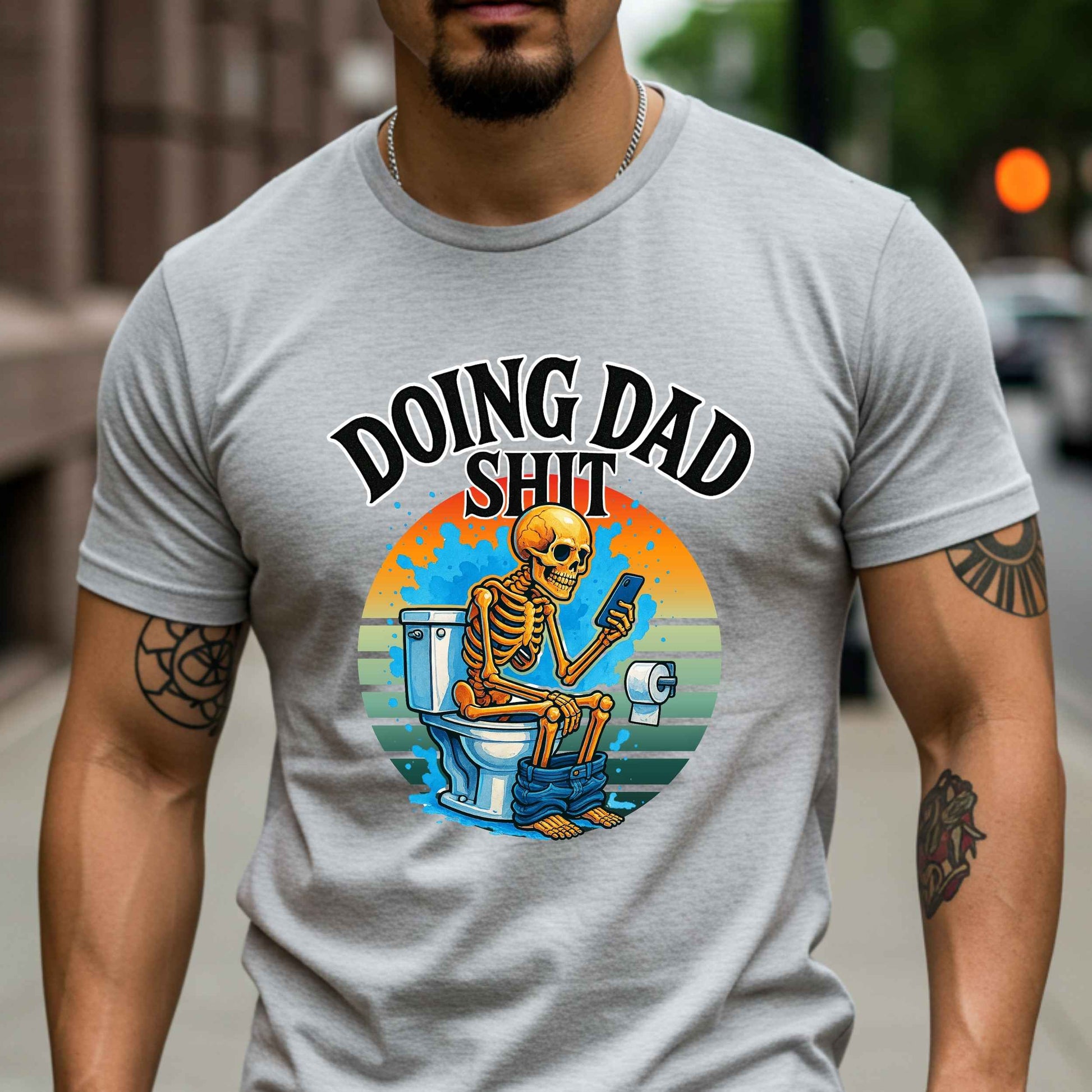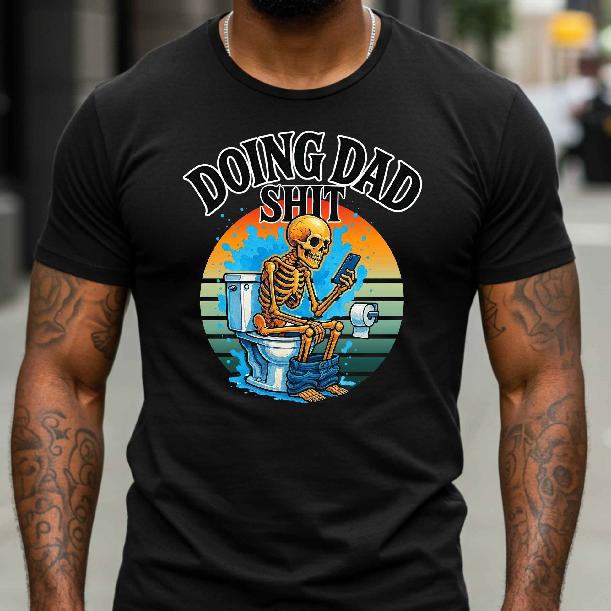 Bring the dad vibes and the laughs with this hilarious "Doing Dad Shit" graphic tee! Featuring a skeleton on the toilet scrolling through his phone, this funny dad shirt captures the real moments of dad life in a way only dads will truly understand. Perfect for Father's Day, birthdays, or just because, this lightweight, comfortable men's graphic t-shirt is designed for dads who take care of business... in more ways than one.