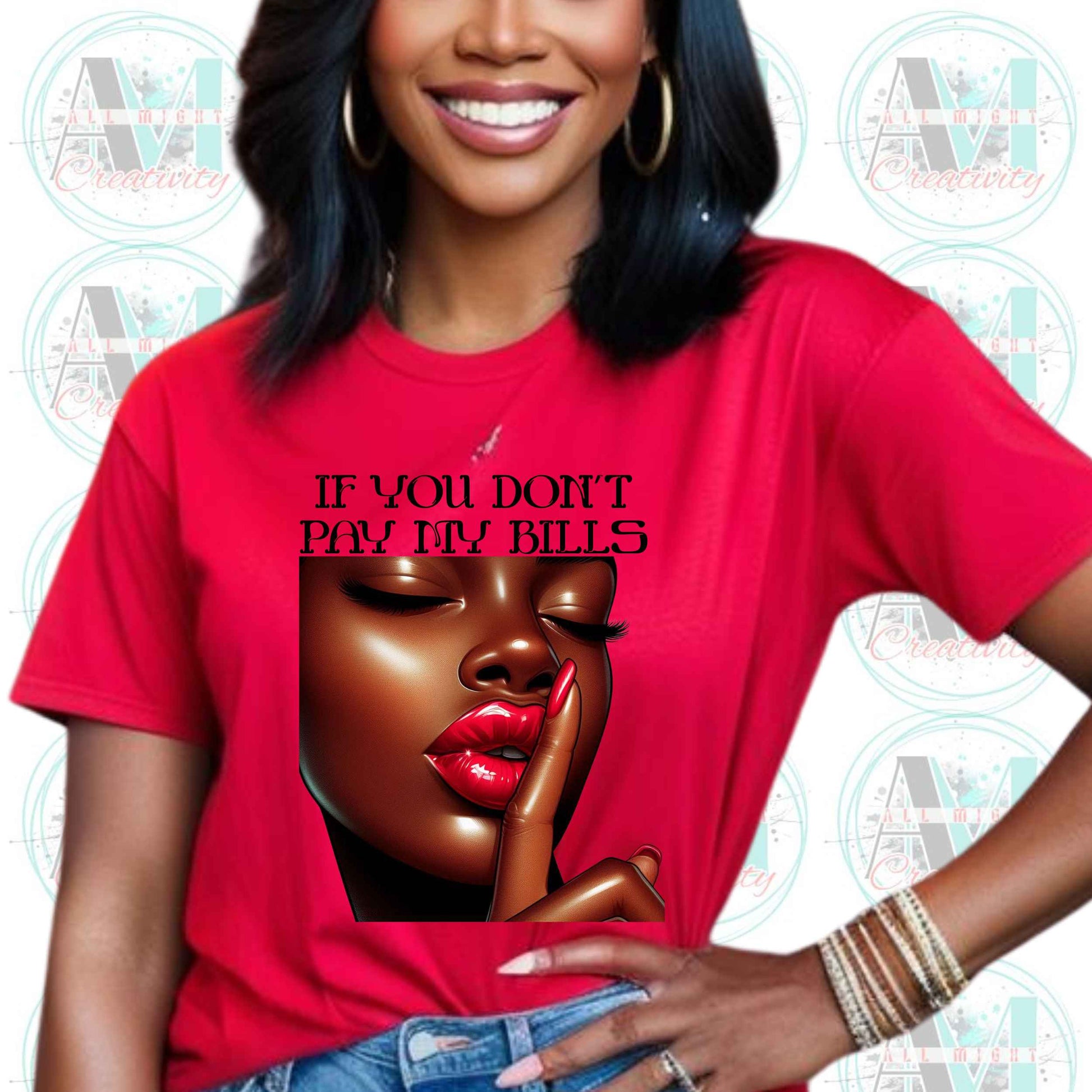 Say it louder… or actually, don’t. This shirt says it all for you. The “If You Don’t Pay My Bills” t-shirt is the perfect response to unsolicited opinions, side-eyes, and folks who forgot their name isn’t on your bills. Featuring a stunning graphic of a confident Black woman giving the ultimate “shhh,” this tee brings the attitude with a side of class.