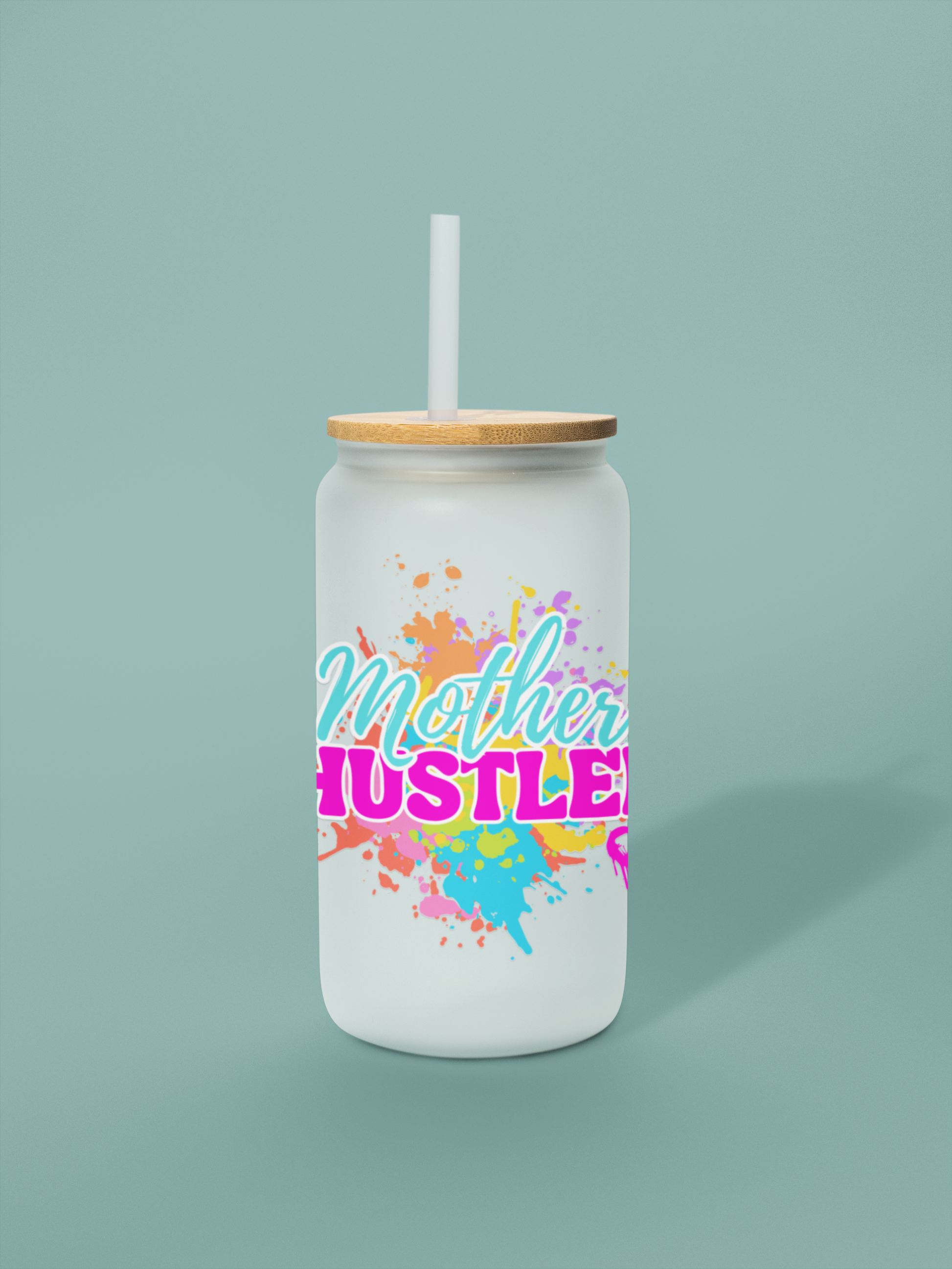 Mother Hustler Sipper Glass | 16oz Motivational Drinking Jar, Gift for Moms