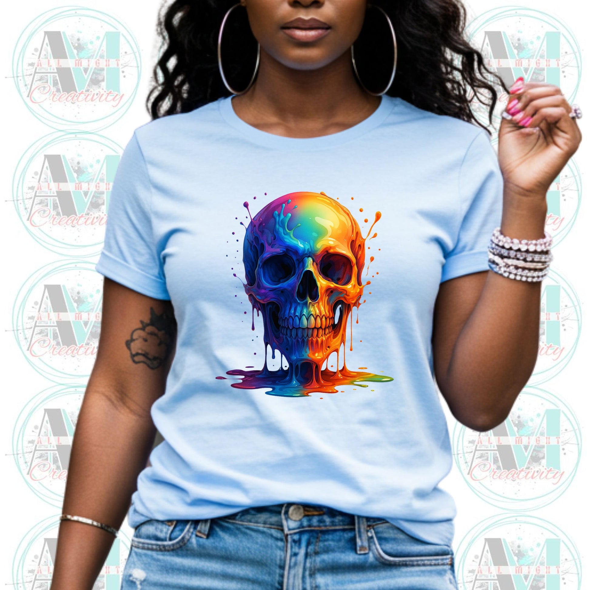 Make a bold statement in this eye-catching Rainbow Melting Skull t-shirt – a vivid fusion of color, darkness, and edgy streetwear style. Featuring a psychedelic skull dripping in neon rainbow tones, this tee is perfect for fans of alternative fashion, festival vibes, or Halloween looks that slay year-round. Whether you're rocking it at a concert, rave, or just strolling through the city, this shirt guarantees all eyes on you.