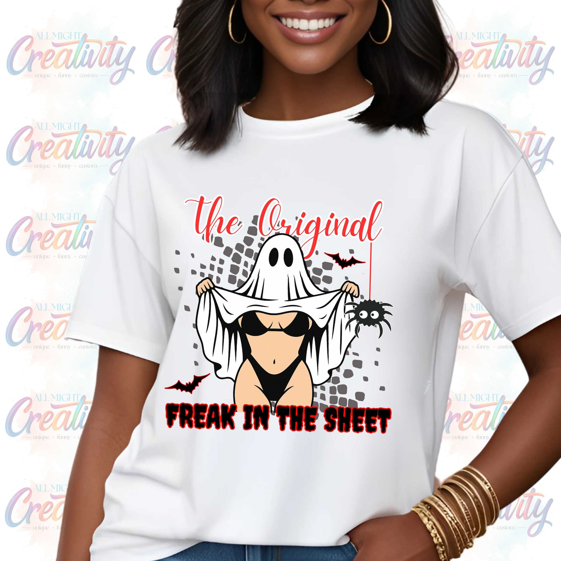 Sexual Humor Halloween Shirt Freak in the Sheet Tee, Inappropriate Summerween Shirt